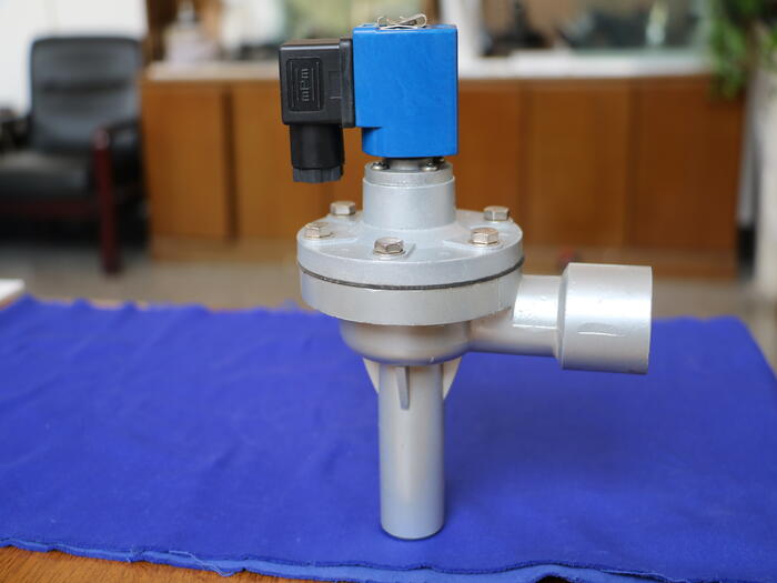 DCF型淹没阀的工作原理简单而有效。当电控仪输入电信号时,电磁先导头吸合动柱,打开卸荷孔,膜片后腔的压力气体迅速排出,膜片前腔的压力气体则将膜片抬起,打开阀门通道进行喷吹。当电脉冲信号消失时,电磁先导头的弹簧使动柱立即复位封闭卸荷孔,膜片后腔的气体压力和弹簧作用力共同作用,使膜片关闭通道,阀门停止喷吹。整个过程实现了对粉尘的准确去除,确保了除尘器的正常运行。