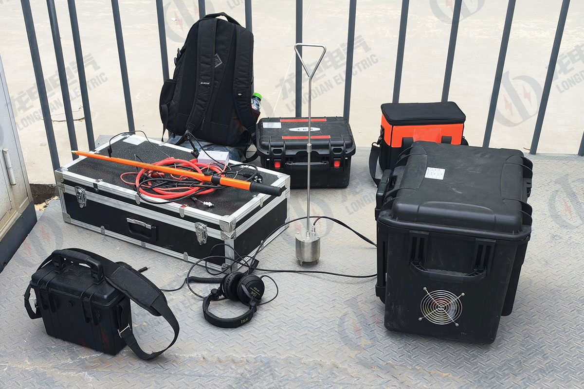 4月1日到山东国家电投某光伏发电厂做电缆故障测试仪售后技术培训。光伏发电厂负责人介绍,有5条电缆发生故障,前后也有三四家厂家过来查找故障,一直没有找到,严重影响了发电任务。我公司技术员首先查看了电缆状况,大部分都是高阻故障,有的甚至达到6 兆欧多。通过一体化电源直流燃弧、高压闪络冲击故障点,声磁同步等手段,在2米高大土堆下找到3条故障线缆,又在其他地方找到2条故障电缆,解决了该电厂的几条顽固性的电缆故障,同时也完成了培训任务。
