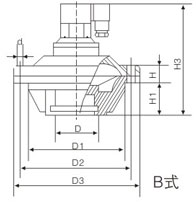 型号 D(A式) D(B式) D1 D2 D3 H H1 H2 H3 d